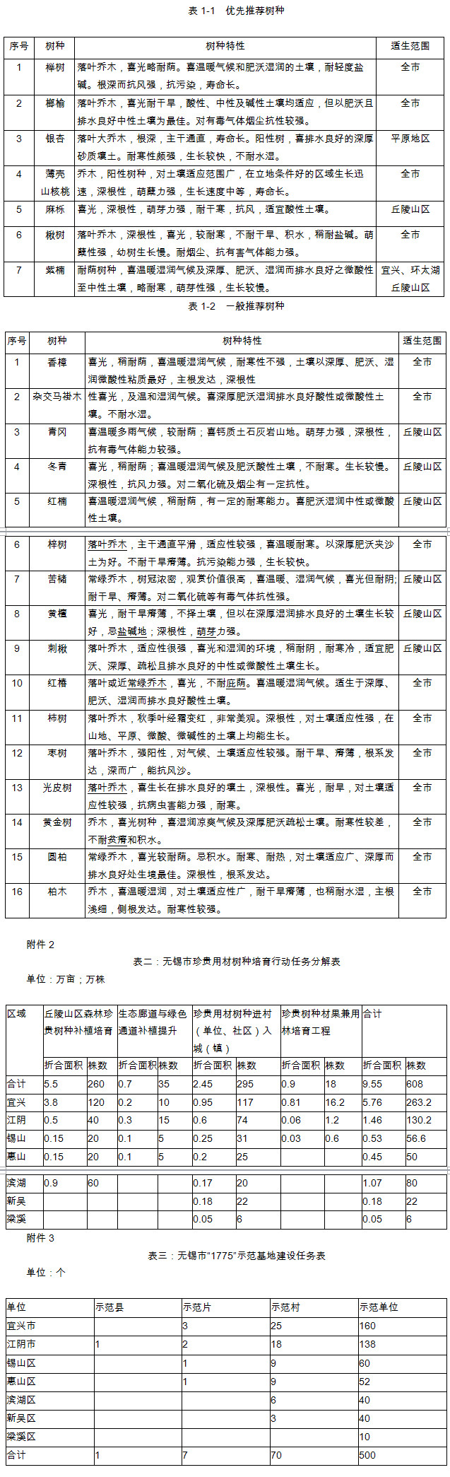 2.表二:無錫市珍貴用材樹種培育行動任務分解表