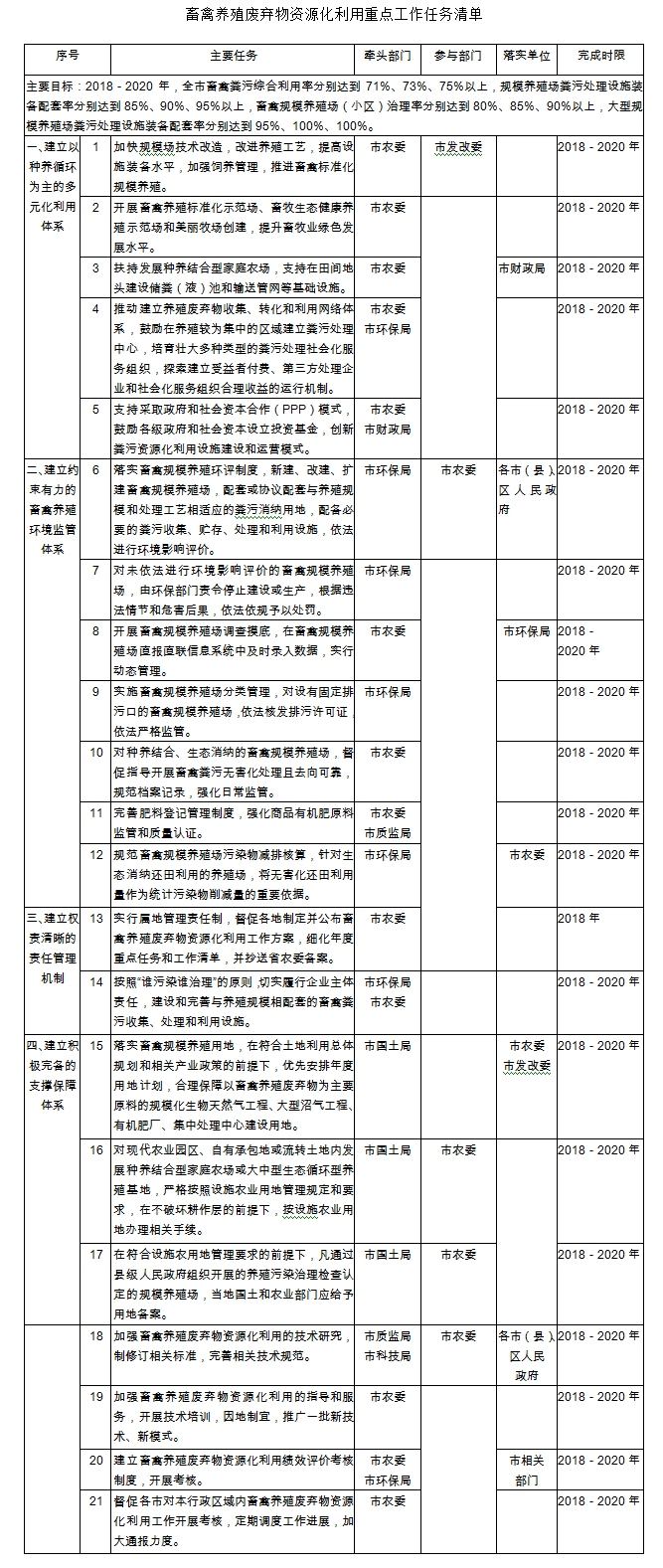 附件:畜禽養殖廢棄物資源化利用重點工作任務清單