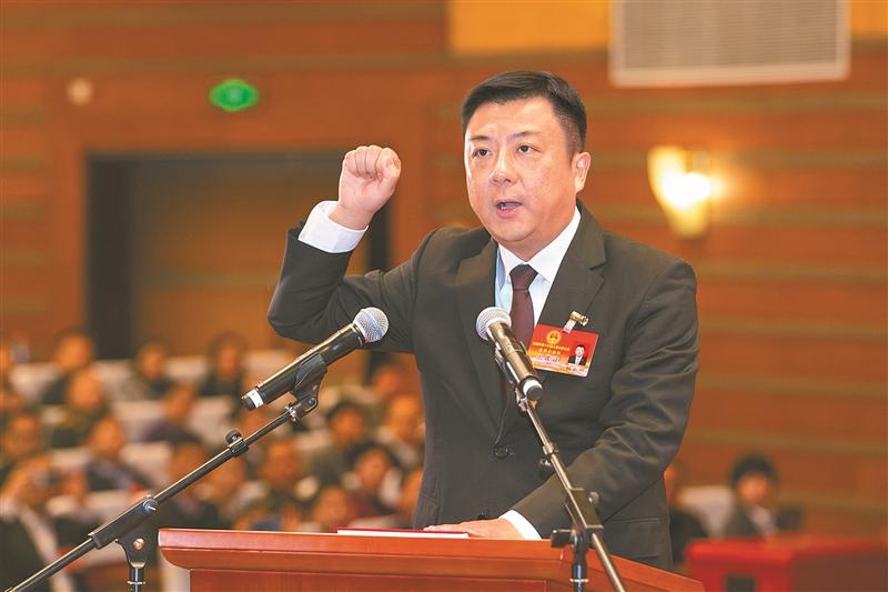 1月11日,新當選的無錫市人民政府市長杜小剛向憲法宣誓。(石覺 攝)