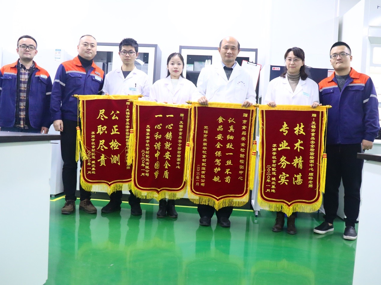 1月16日晚8點(diǎn)多,蘇南公司幾位負(fù)責(zé)同志帶著五面錦旗來到蘇南公司快檢實(shí)驗(yàn)室,贈(zèng)給市食檢中心以及中心駐點(diǎn)高級工程師顧曄、呂東明等同志,火紅的錦旗上金字的大字“一心鑄就安全盾,一心和諧中國夢”、“認(rèn)真細(xì)致一絲不茍,食品安全保駕護(hù)航”。