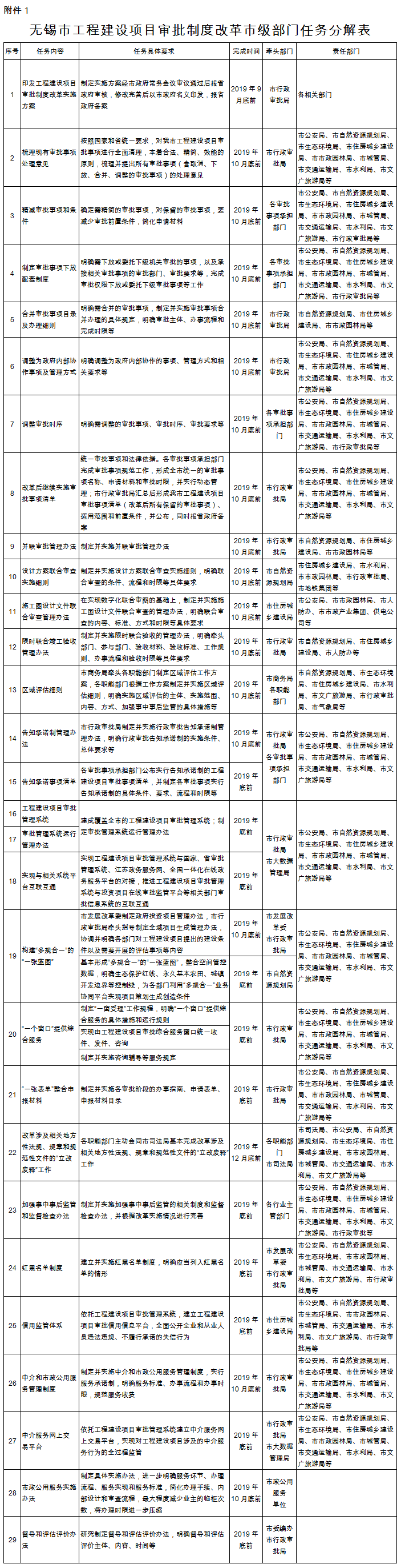 附件:1.無錫市工程建設項目審批制度改革市級部門任務分解表