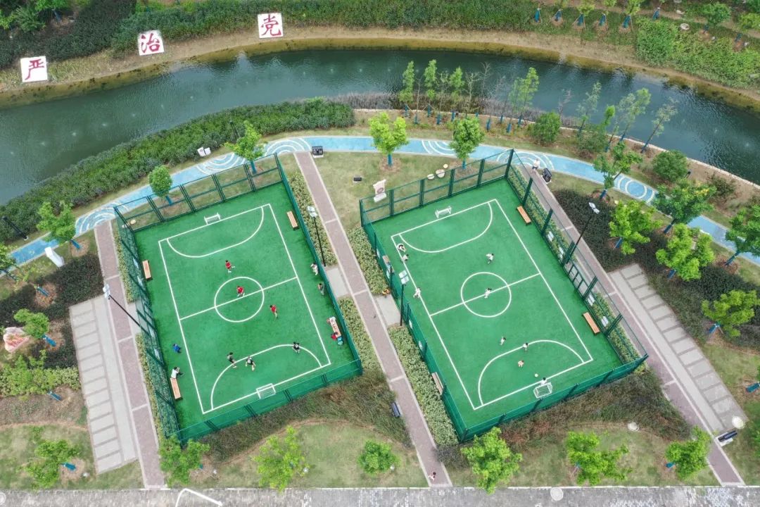 該游園分為南北兩側,北側包括親水平臺和籠式足球場,沿道兩旁設置清正廉潔主題石雕,掃描石雕上二維碼,即可收聽廉潔故事。南側游園建設有籠式籃球場和有聲黨建步道,向廣大市民展現紅色文化。