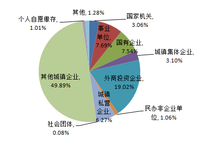 2020年四季度實繳職工數按不同性質單位分類占比圖
