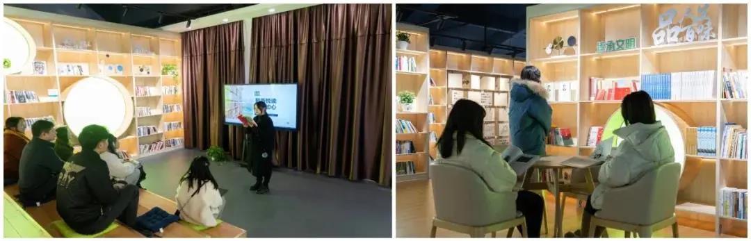 該館充分利用展廳已有的挑高空間,做好創(chuàng)意設(shè)計,通過書架與休閑區(qū)相結(jié)合,形成小型閱讀培訓區(qū)。與傳統(tǒng)的公共圖書館相比,“耘課堂”兼顧傳統(tǒng)與創(chuàng)新,將圖書資源和閱讀空間靈活運用,將農(nóng)業(yè)科普與閱讀服務(wù)整合創(chuàng)新,讓基層群眾可以感受到閱讀的快樂。目前,“耘課堂”已成為楊巷鎮(zhèn)書香網(wǎng)紅打卡之地。