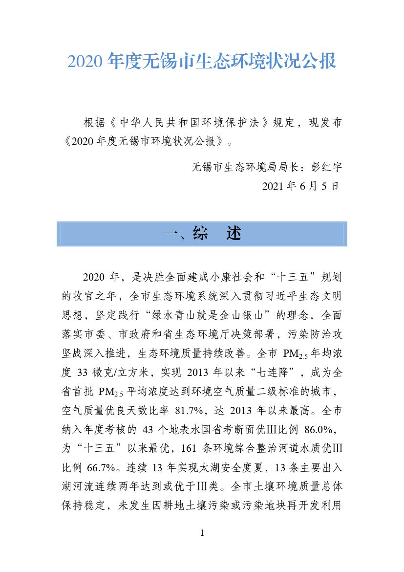 2020年度無錫市生態(tài)環(huán)境狀況公報 |