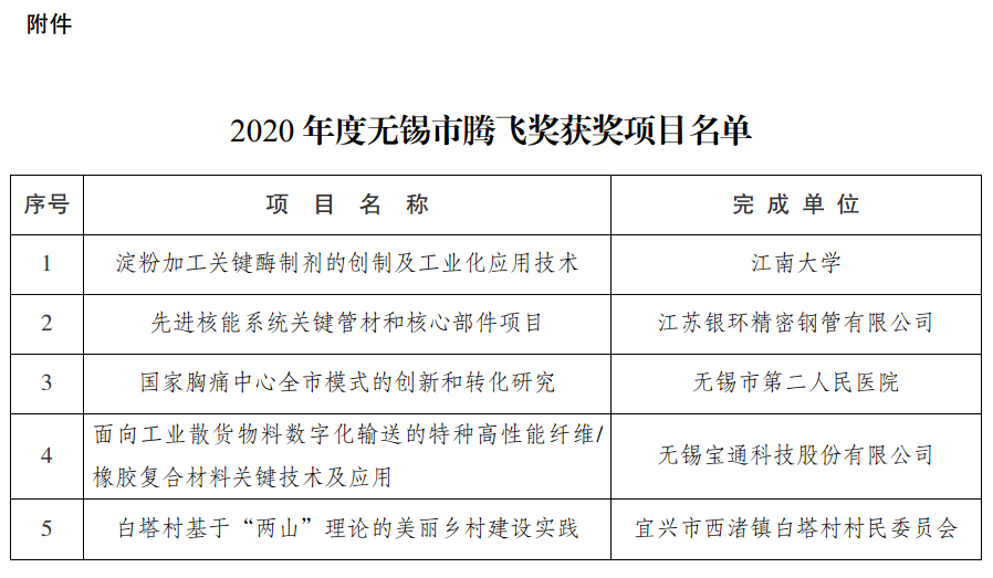 附件: 2020年度無錫市騰飛獎獲獎項目名單