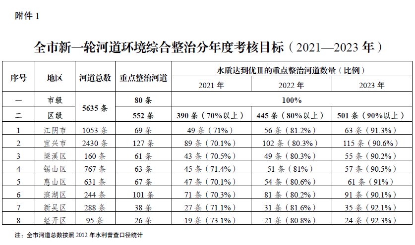 附件:1.全市新一輪河道環境綜合整治分年度考核目標(2021—2023年)