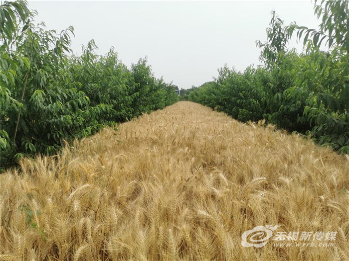 來到位于陽山水蜜桃核心產區的建勤家庭農場時,農戶正在將剛收割下來的麥穗脫粒后在場上攤曬,而這些小麥居然是種在桃林里的。“桃樹行間空著也是空著,去年冬天我就嘗試間作了約3畝小麥,現在正好到了收割季,小麥穗大粒飽,畝產能有1000斤!”農場負責人孫建勤驚喜地說。
