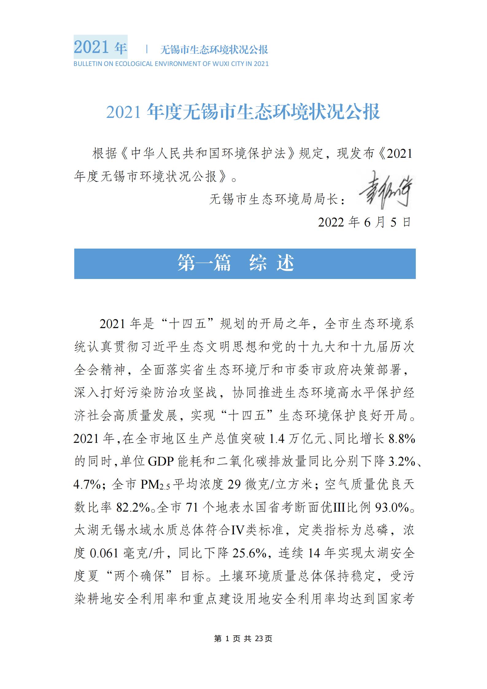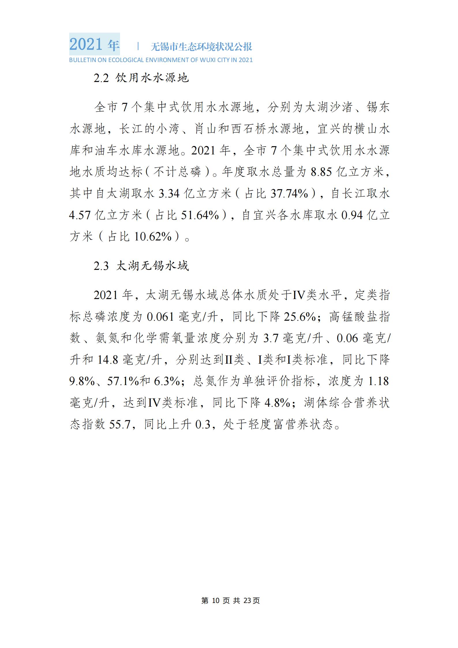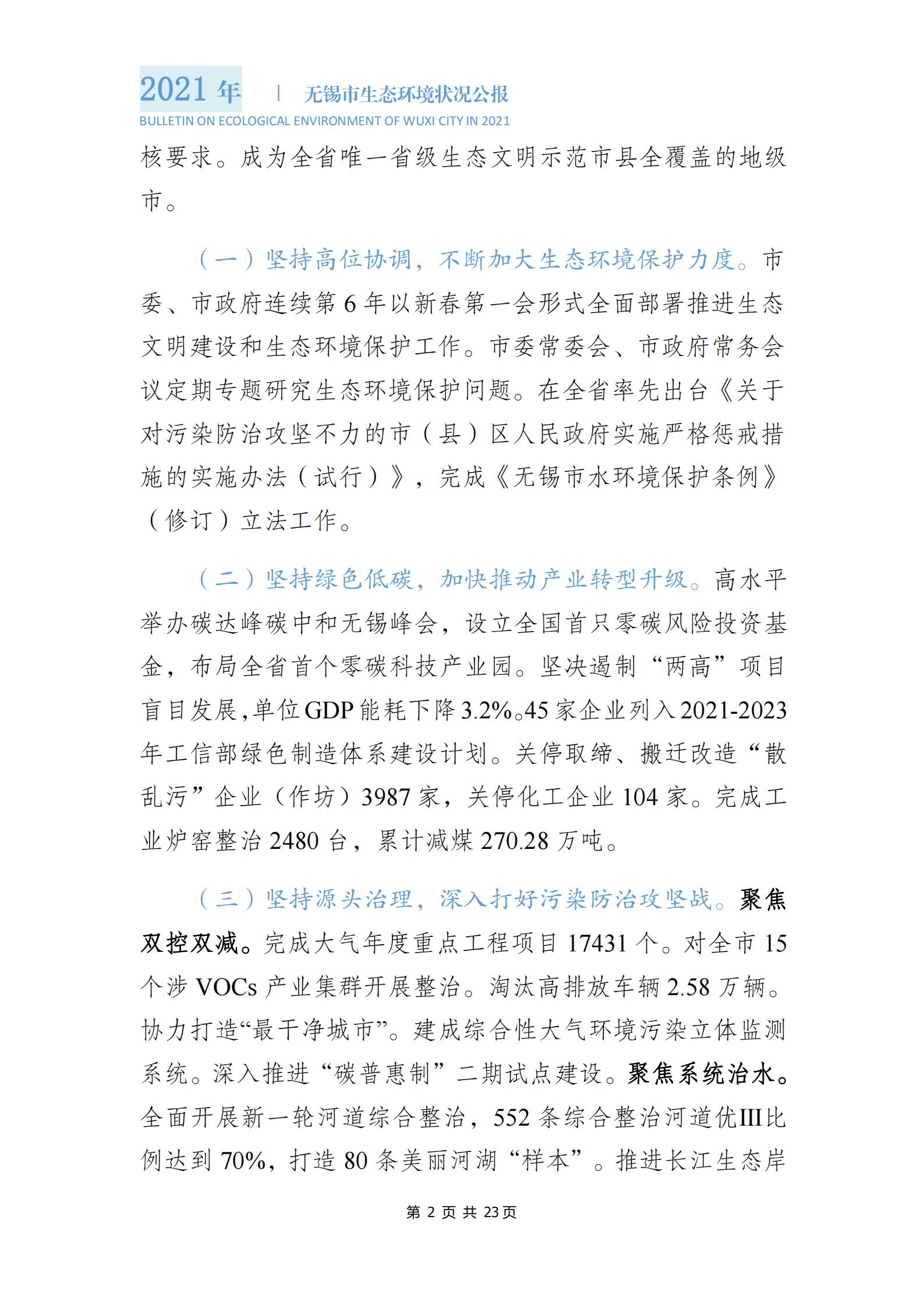 2021年度無錫市生態(tài)環(huán)境狀況公報 |