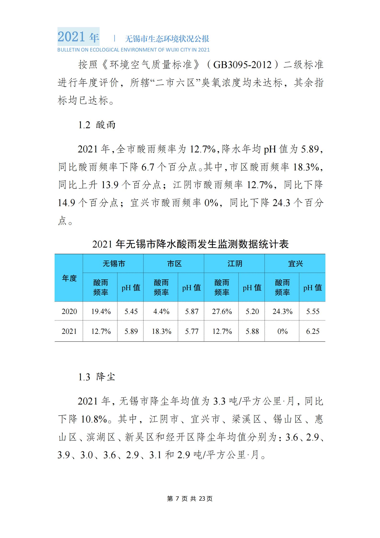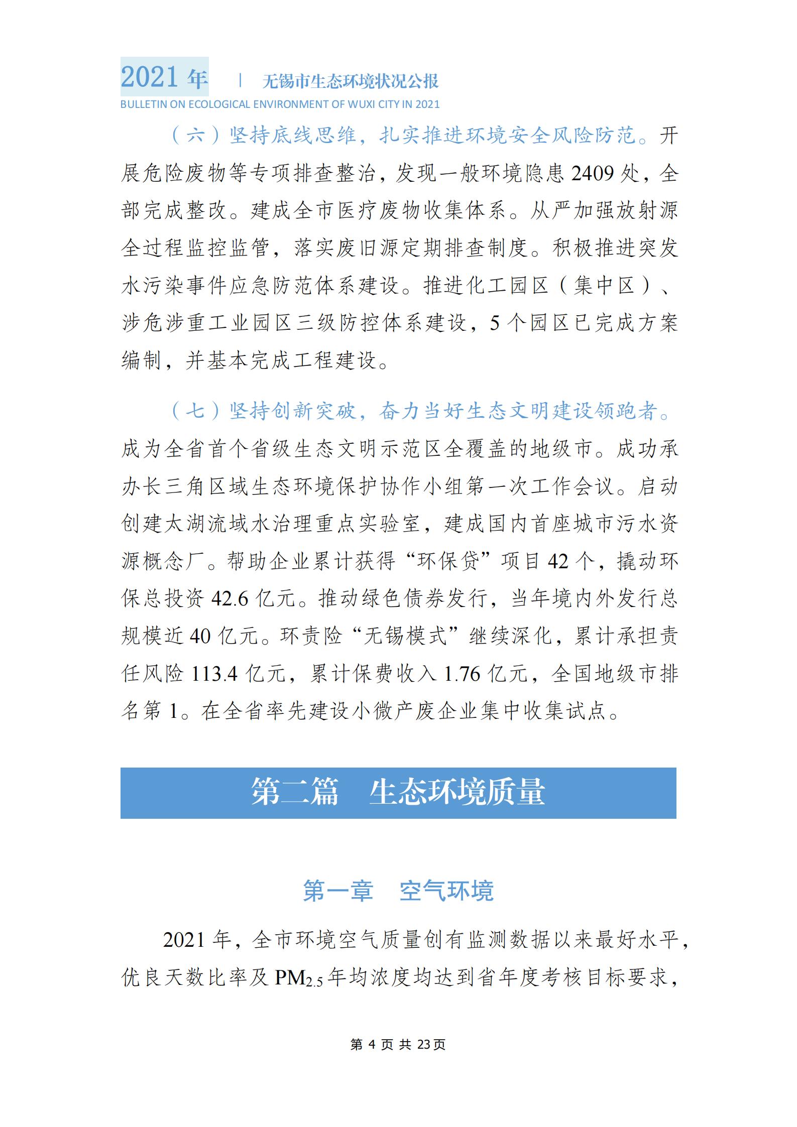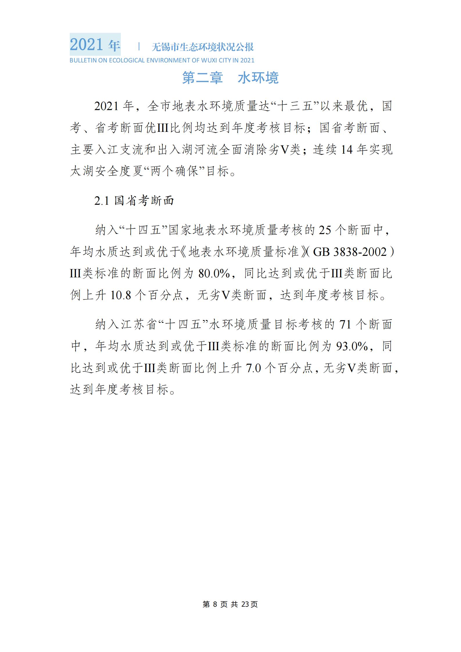 2021年度無錫市生態(tài)環(huán)境狀況公報 |