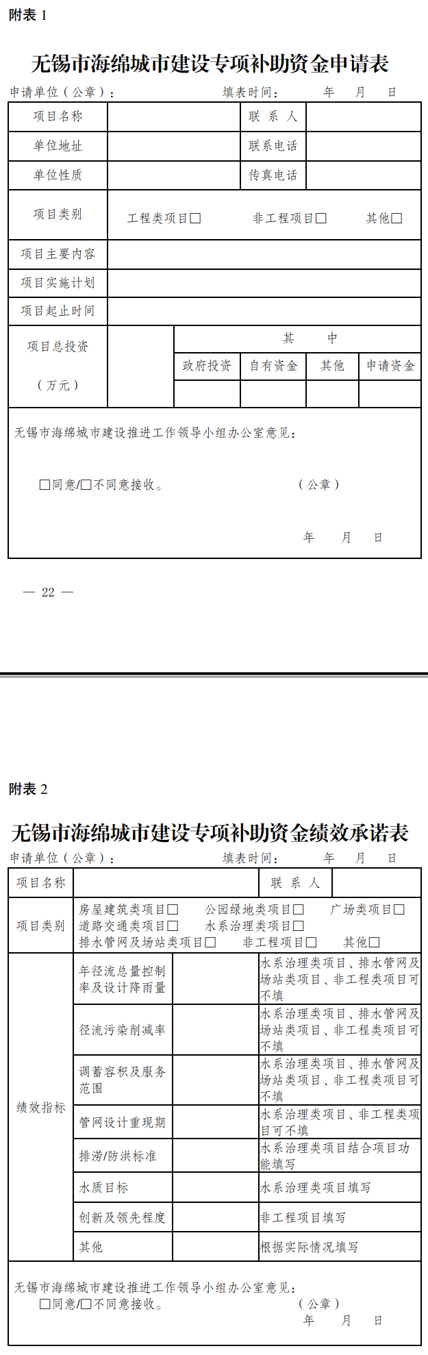 附表:1.無錫市海綿城市建設專項補助資金申請表