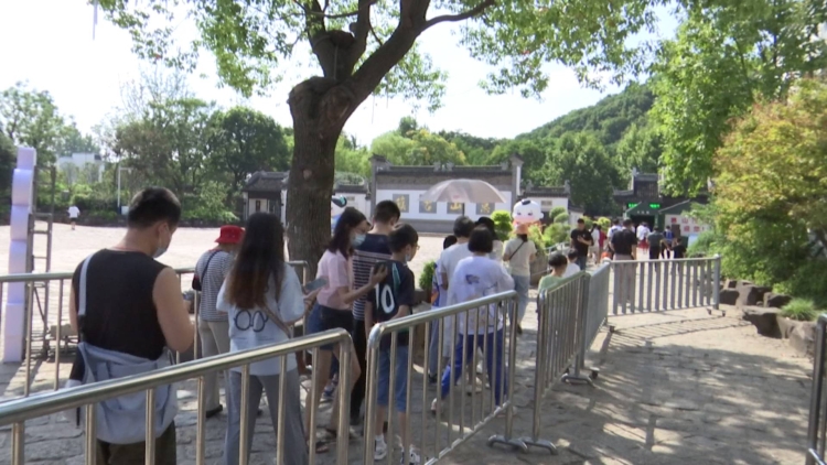 上午9點半,前來惠山古鎮(zhèn)景區(qū)游園的市民游客已經排成了一條長龍。雖然景區(qū)客流較平日有所增加,但大家佩戴好口罩,主動配合工作人員進行掃碼和測溫工作,現場秩序井然。