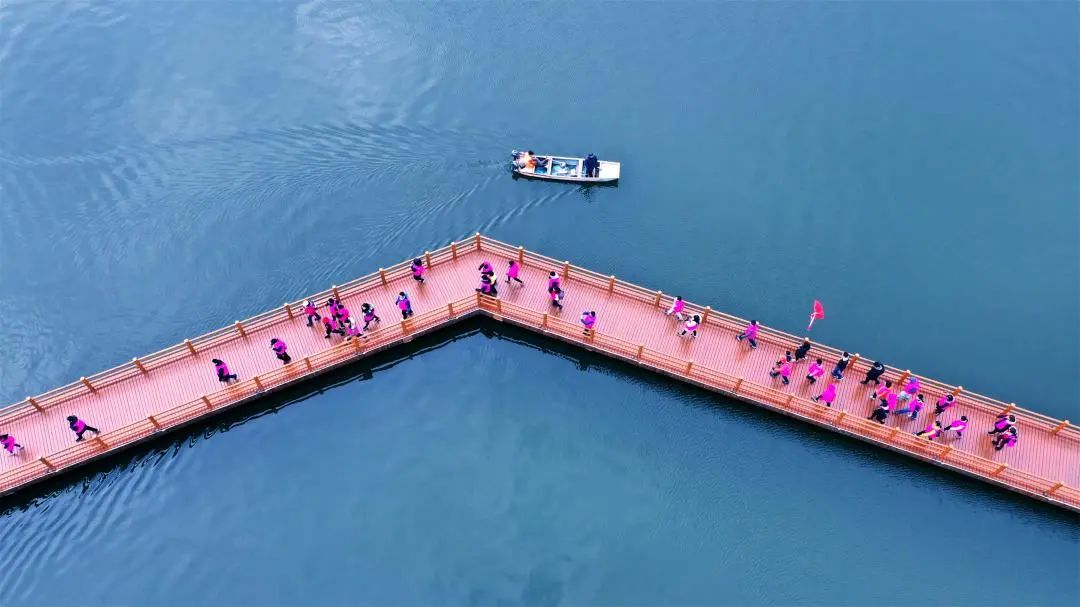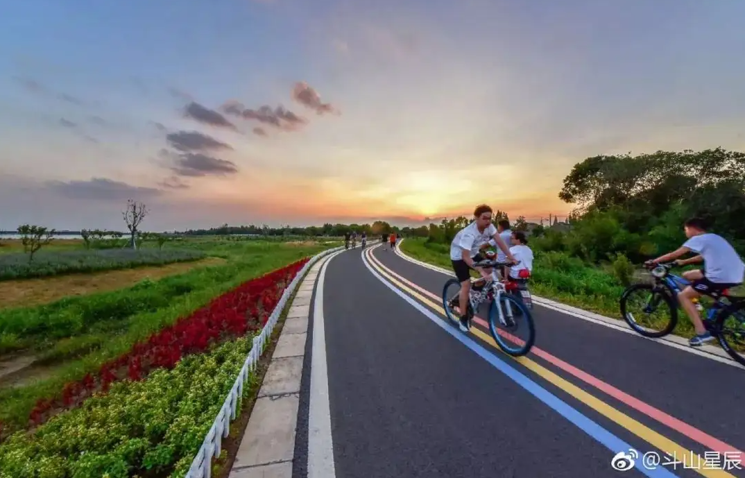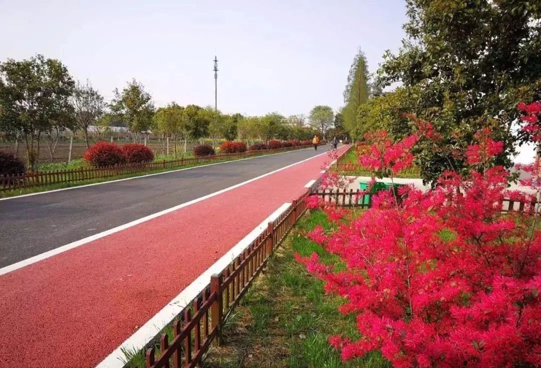 步道總長8公里,沿途空氣清新,風景幽美,不少運動愛好者選擇在此徒步或夜跑。風吹過來,涼颼颼的很愜意。沿途有鵝湖玫瑰園、南青蕩蘭花園等生態園區,還有干凈整潔的村落,飽覽鄉村風光。