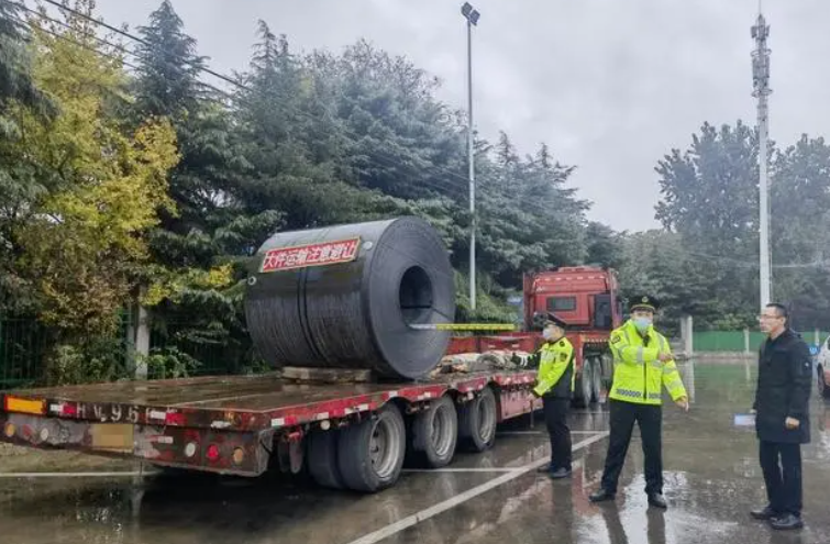 日前,惠山區交通運輸綜合行政執法大隊在洛社雅西路攔截到5輛可疑車輛,其中一輛裝載鋼卷的運輸車輛嚴重超限,但鋼卷不可解體,無法正常卸駁載,對沿途公路橋梁涵洞有嚴重安全隱患,交通執法人員隨即告知其辦理大件運輸相關事項。