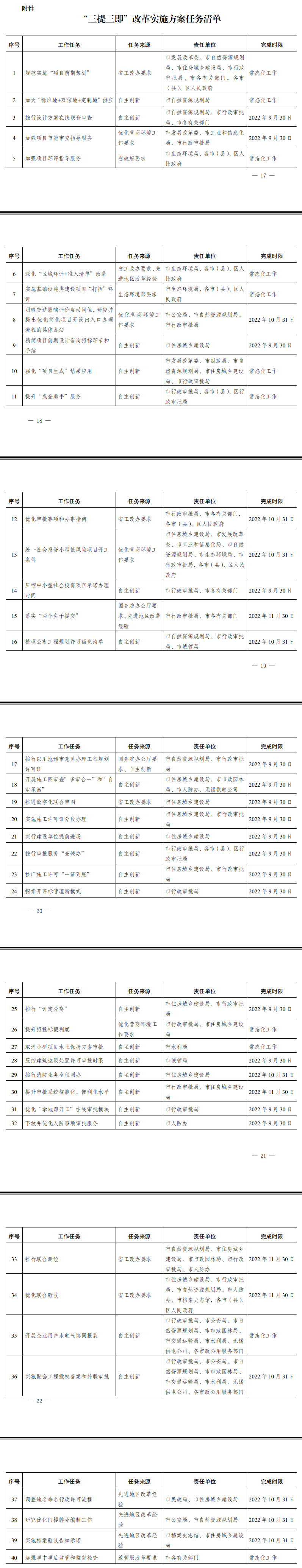 12.優(yōu)化審批事項和辦事指南。按照精簡環(huán)節(jié)、減少材料、控制時限、統(tǒng)一標準的要求,深入分析審批事項和辦事指南的實際運行情況,優(yōu)化完善審批事項清單,對辦事指南進行查漏補缺,形成相對穩(wěn)定的事項清單和更加精準的辦事指南,同步調(diào)整四個階段“一張表單”。〔責(zé)任單位:市行政審批局、市各有關(guān)部門,各市(縣)、區(qū)人民政府〕