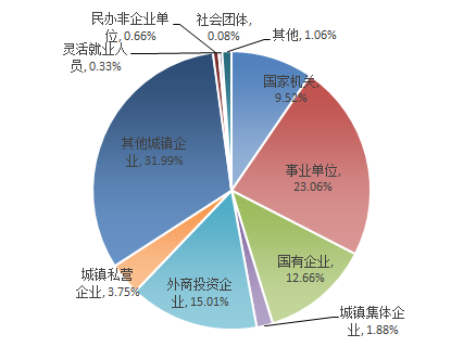 從繳存主體看,以非公群體為主,繳存人數占四季度實繳職工數的79.9%,其中城鎮私營企業及其他城鎮企業職工繳存占比較高。具體繳存結構如下: