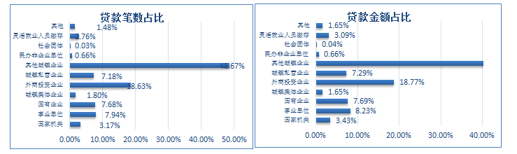 2022年四季度職工貸款筆數及貸款金額按單位性質分類占比圖