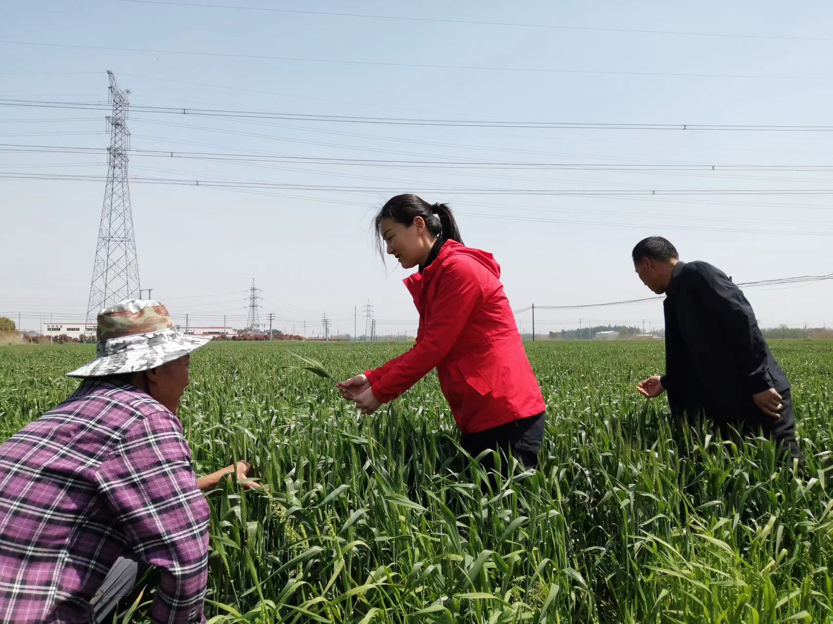 圖:鎮江新區農民在小麥抽穗揚花期田間勘察