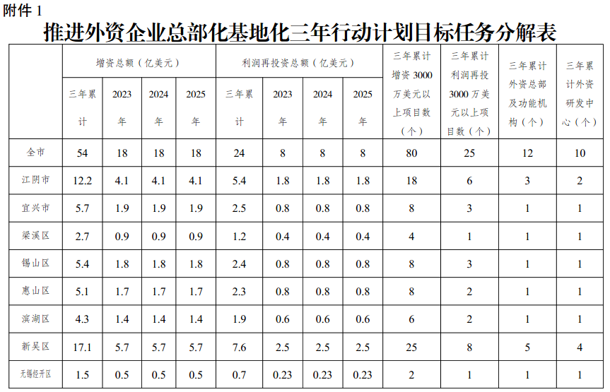 無錫市推進外資企業總部化基地化發展三年行動計劃(2023—2025年)