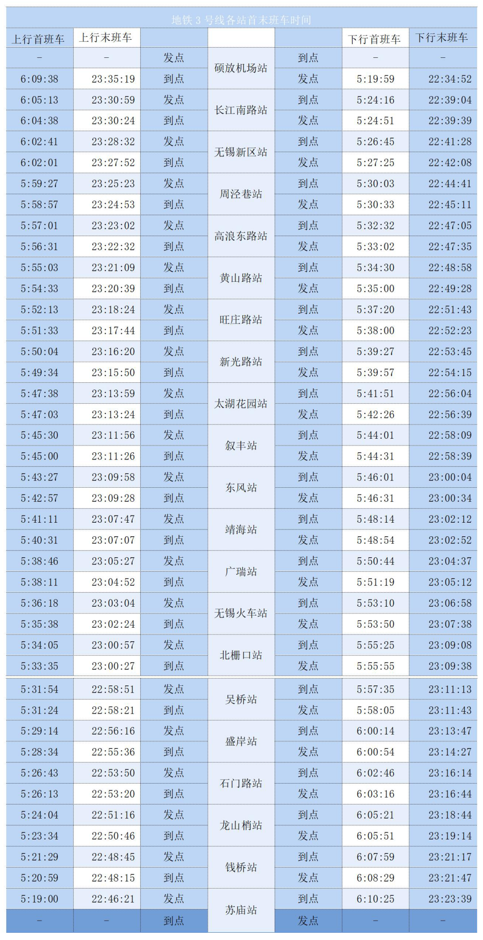 3月24日賽事當天,無錫地鐵1、2、3、4號線均提前至5:20左右開始載客運營,行車間隔約10分鐘,具體以時刻表為準。