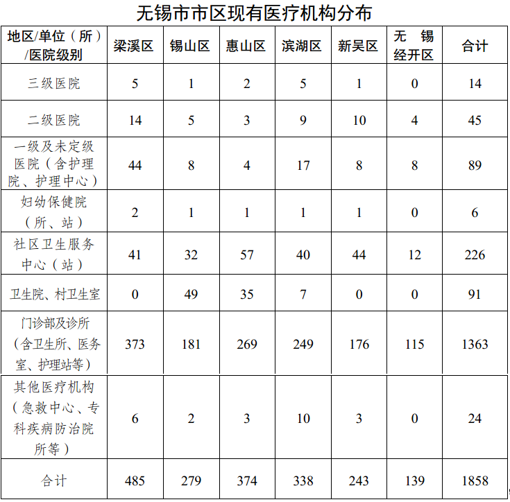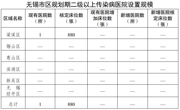 (3)傳染病醫院:市區已設置三級公立傳染病醫院1所(無錫市傳染病醫院)。二級以上綜合醫院均應設置感染性疾病科,建設標準規范的感染性疾病科門診。