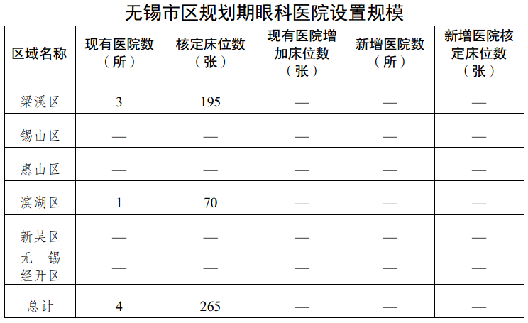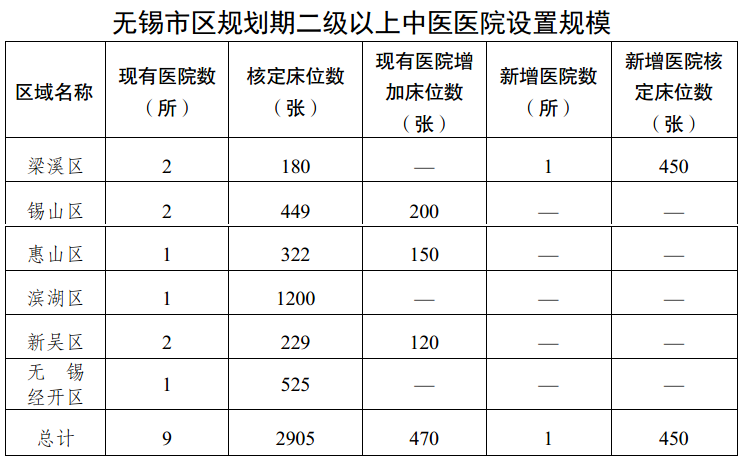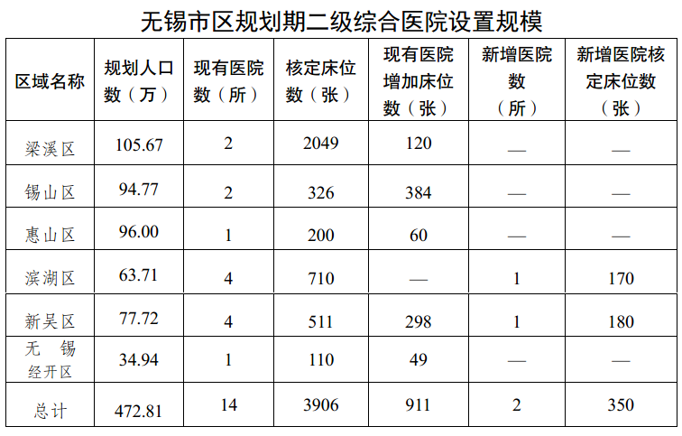 無錫市市區醫療機構設置規劃(2023-2025年)