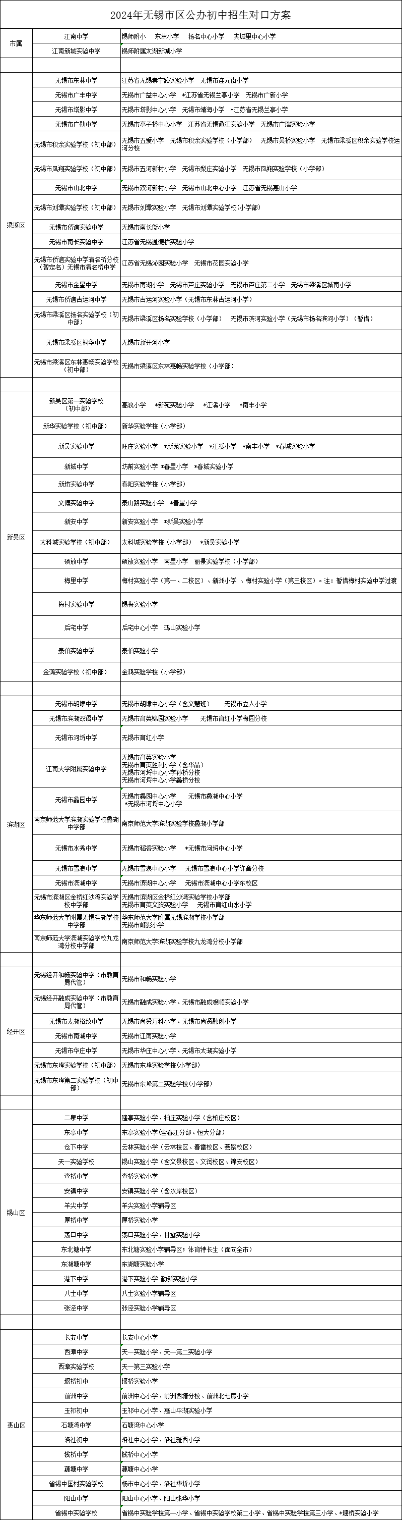 內容概述 2024年無錫市區公辦初中招生對口方案