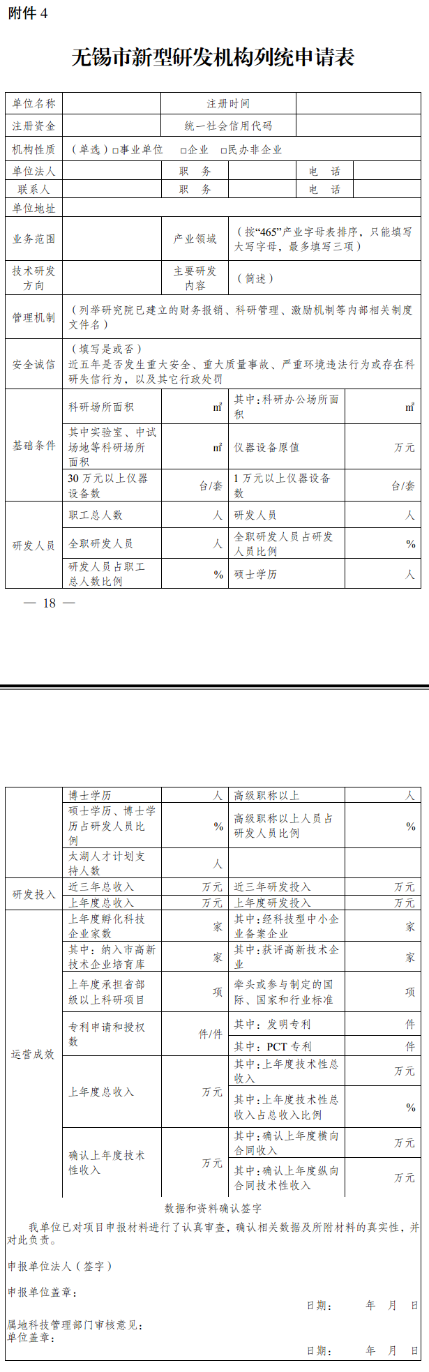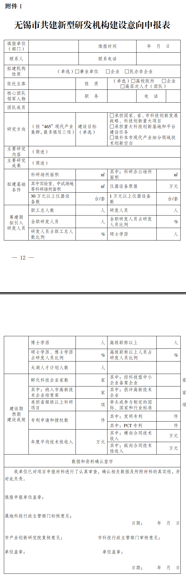 附件:1.無錫市共建新型研發機構建設意向申報表
