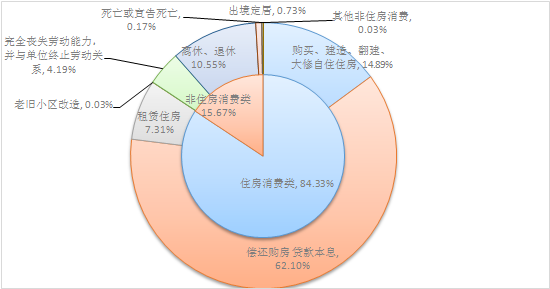 2024年二季度,住房消費類提取金額為55.6億元,環比增長6.29%,占當季提取額的84.33%。其中還貸提取占比最高,提取金額40.94億元,占當季提取額的62.1%。具體提取結構如下:
