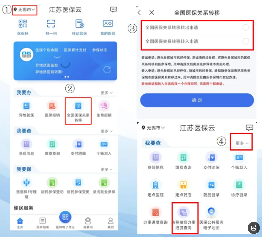 4.查詢辦理進度與申報結(jié)果:回到主頁,找到”我要查”,點擊更多→轉(zhuǎn)移接續(xù)辦事進度查詢。也可攜帶有效證件至窗口查詢,或撥打醫(yī)保服務熱線:0510-12393