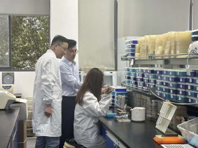 (圖說:江蘇銀行信貸經(jīng)理在賽索飛生物科技有限公司了解企業(yè)研發(fā)及生產(chǎn)情況)
