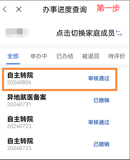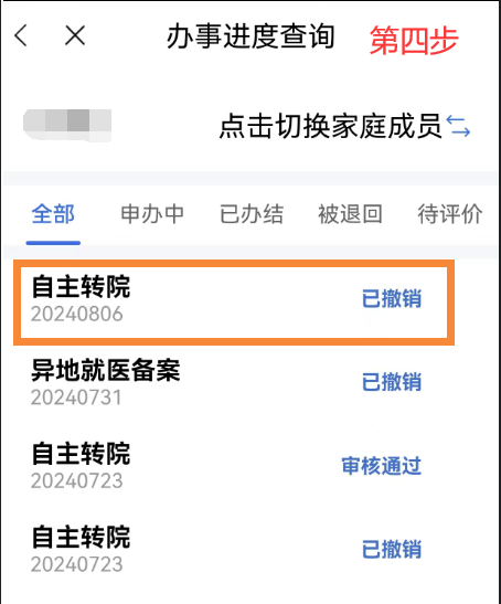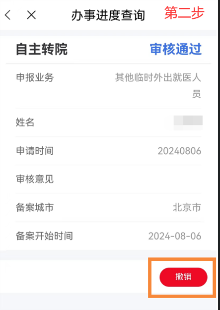 異地就醫備案成功后,點擊首頁【我要查】-【辦事進度查詢】模塊,在【辦事進度查詢】中選擇已審核通過的需要撤銷的備案信息,點擊【撤