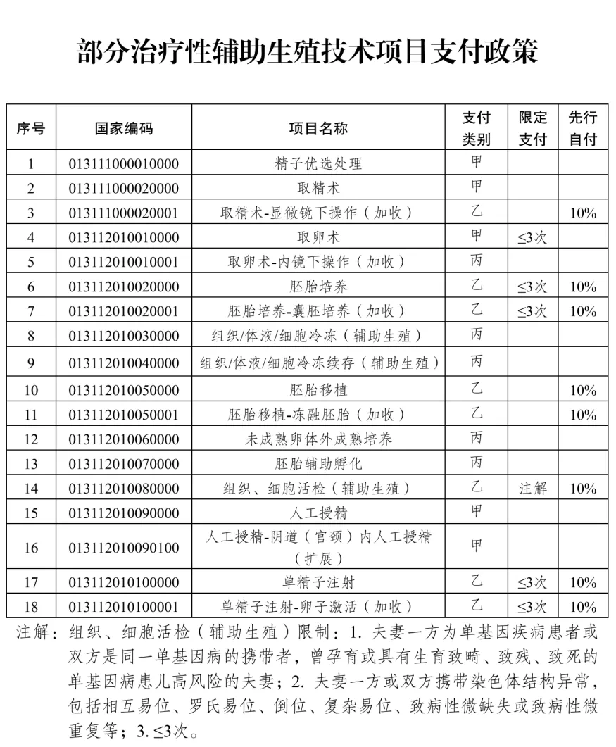 “胚胎培養”等13個輔助生殖類醫療服務項目自2024年7月1日起納入醫保基金支付范圍,涵蓋了開展人工授精和試管嬰兒等常用必要的醫療性輔助生殖技術,全省實行統一醫保支付政策,參保人員在省內符合衛生健康和醫保等相關政策規定的醫療機構(見附表1),實施人類輔助生殖技術發生的13項輔助生殖技術項目(見附表2)的門診治療費用,實行門診按項目單獨支付,職工醫保和居民醫保參保患者除先行自付部分外,統籌基金分別按80%和70%予以支付。