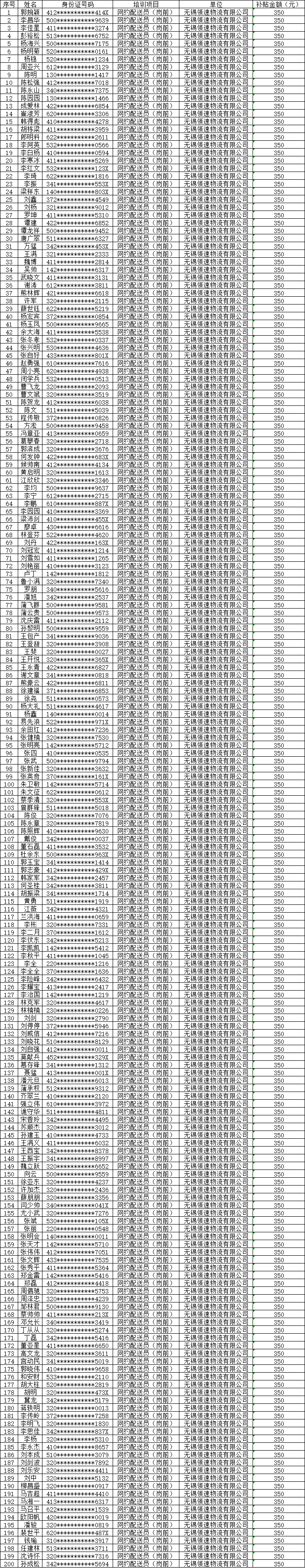 根據《關于加強新業態新模式從業人員職業技能培訓的通知》(錫人社函〔2024〕139 號)文件精神,經要件形式審查,現將2024年新業態新模式從業人員職業技能培訓補貼情況予以公示。公示時間為:2025年6月10日至2025年6月17日。對公示項目情況如有異議,請向無錫市高技能人才公共實訓服務中心反映。聯系電話:0510-85030823。