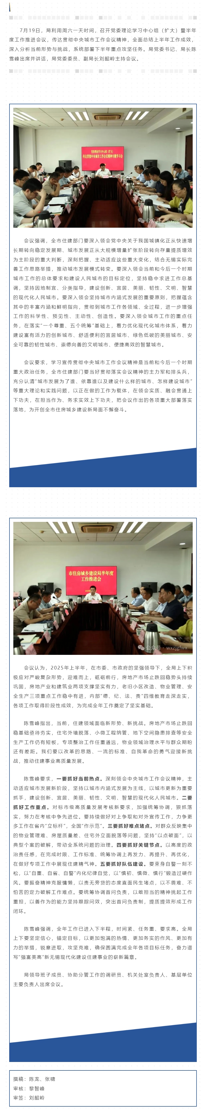 傳達貫徹中央城市工作會議精神|局召開黨委理論學習中心組(擴大)暨半年度工作推進會議 |