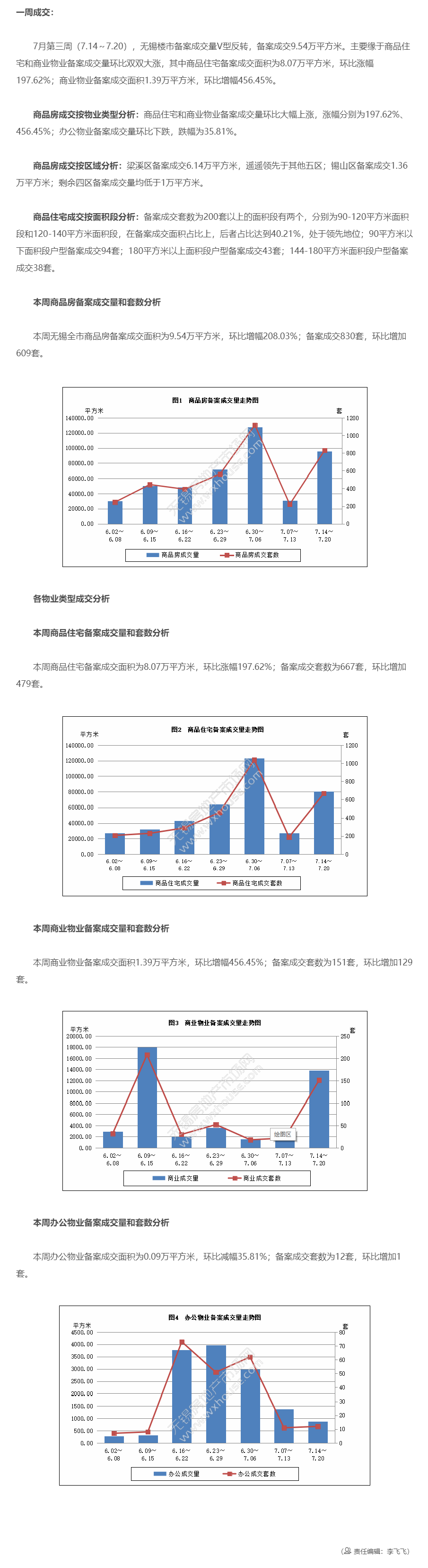 | 內(nèi)容概述 | 7.14~7.20無(wú)錫商品房一周備案成交9.54萬(wàn)平方米 | ||||