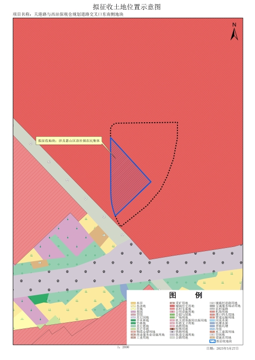 由縣級以上地方人民政府組織實施的成片開發建設需要用地,項目名稱為天港路與西站保稅倉規劃道路交叉口東南側地塊。