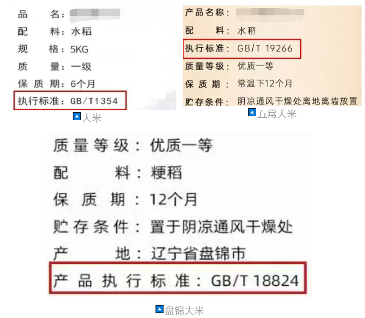 大米:GB/T 1354是普通大米,GB/T 19266是五常大米,GB/T 18824是盤錦大米等。
