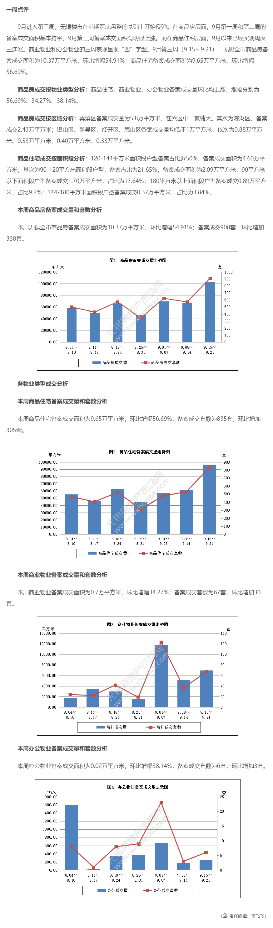 9.15~9.21無錫商品房一周備案成交10.37萬平方米 |