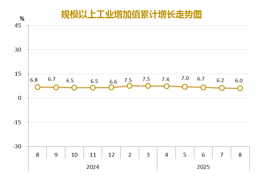 | 內容概述 | 2025年1-8月規模以上工業增加值增長6.0% | ||||