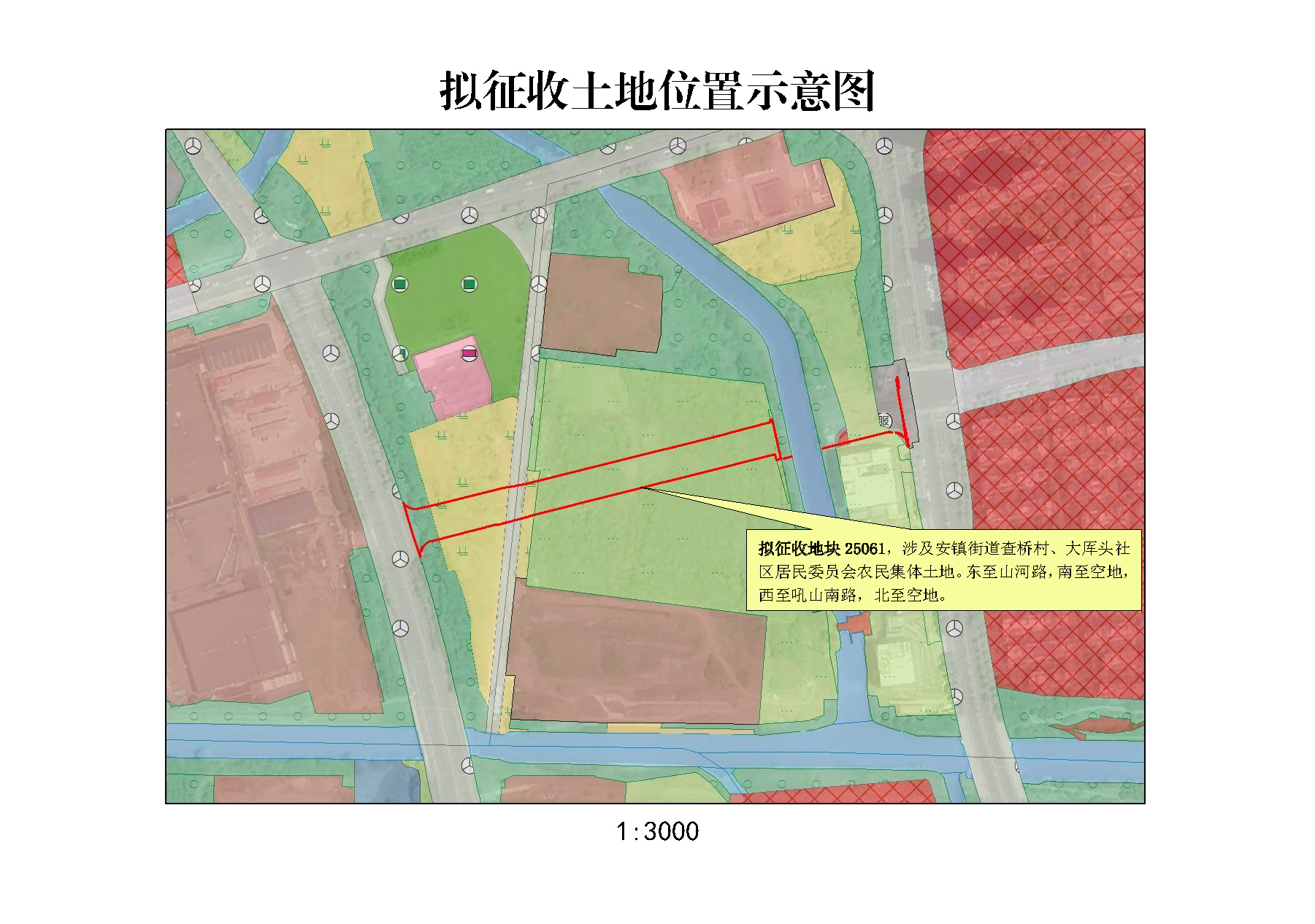 本次擬征收土地位于安鎮街道查橋村、大厙頭社區居民委員會農民集體范圍內。擬征收土地位置詳見附圖。