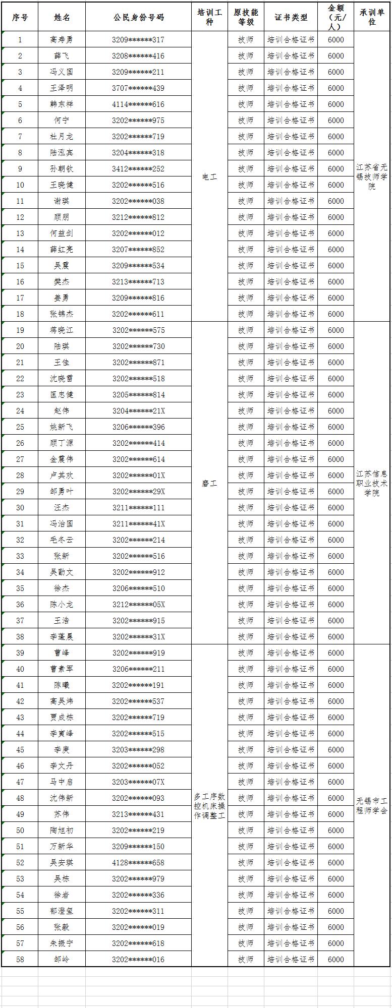 根據(jù)《關(guān)于組織開展2025年度無錫市技師崗位技能提升培訓(xùn)的通知》(錫人社函〔2025〕20號)文件精神,經(jīng)審核,3家承訓(xùn)單位符合無錫市技師崗位技能提升培訓(xùn)補貼條件,現(xiàn)將承訓(xùn)單位及參訓(xùn)學(xué)員名單公示如下: