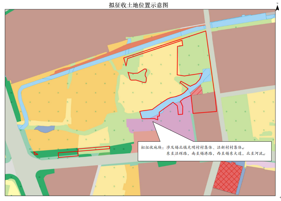 本次擬征收土地位于錫北鎮光明村村集體、涇新村村集體范圍內。擬征收土地位置詳見附圖。
