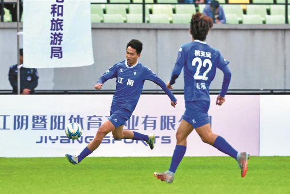 11月23日,今年“無錫杯”足球聯賽迎來決賽第二回合較量,“三冠王”江陰隊與常規賽全勝晉級的“黑馬”宜興隊展開巔峰對決。當播音員播報名單時,觀眾們都樂了:兩隊有不少無錫隊球員,就好像無錫隊內部的一場教學比賽。宜興隊守門員姜何表示,“蘇超”結束后,大家會通過踢一些業余比賽的方式來保持狀態。